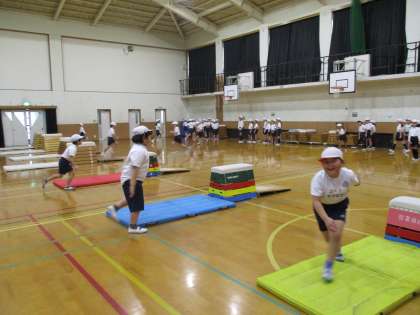 冬休みがあけて,新年最初の体育は跳び箱と縄跳びです。子どもたちは,久しぶりにたくさんの友だちと一緒に運動できることに大喜びで,とても張り切っています。跳び箱の高さにも怯むことなく喜んで挑戦しています。また,冬休みの縄跳び練習の成果で,新しい技を習得して披露してくれる子どもたちもいます。