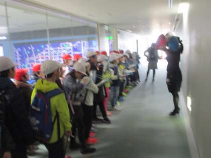 3年生は本日,社会見学で京都府警本部に行ってきました。係の方から京都府では1日の110番通報件数や通報の多い時間帯を聞いて熱心にメモを取っていました。2つの指令センターを見学させていただきました。質問も熱心にしていました。自分たちの生活を守ってくださる警察の仕事にまた興味がわいたようです。