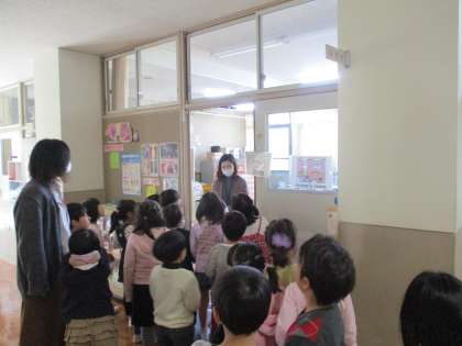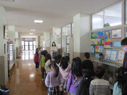1年生は,担任の先生に案内されて学校の中をさっそく探検していました。