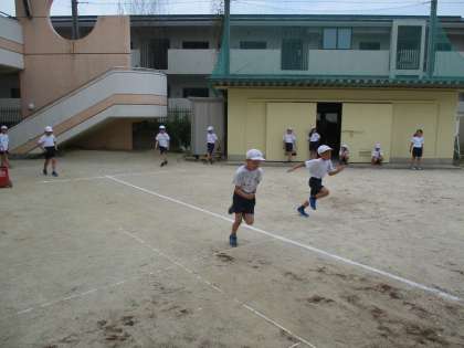 久しぶりの体育の学習,広い運動場で思いっきり走りました。まずは入念に準備運動をして,それから腕の振り方や足の上げ方など,速く走るためのコツを確認して練習しました。そして最後には50m走のタイムを計測しました。学んだことをしっかりと生かして,いいフォームで一生懸命走りました。