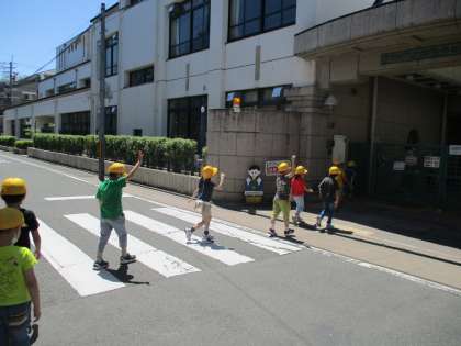 そこで,交通安全について,映像を見ながらみんなで約束を確かめたり,実際に道路を歩いて確認してみたりしました。