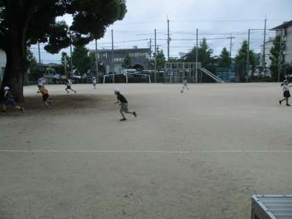 中間休みになると雨も止んでいたので,低学年の児童は運動場に出てきて友だちと遊んでいました。