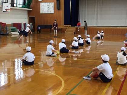 フラフープやボール,コーンなども使って,回したり,投げたり,受けたりと,いろいろな動き方にチャレンジしました。