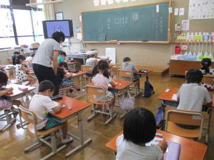普段とは違う登校時間で,戸惑うこともあったかと思いますが,元気に登校してきてくれました。