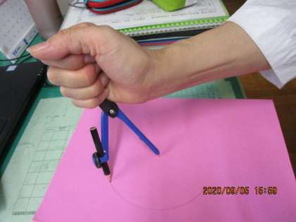 算数科の学習で(教科書下巻)コンパスを使います。