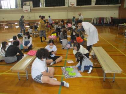 10月10日(土),台風14号が過ぎ去り,PTA「まちくさみっけ!」親子ワークショップが行われました。北区役所の「きたえちゃん体操」をした後,まちくさ博士の重本晋平先生に「まちくさみっけ」の仕方を教えてもらい,親子で学校周辺の探検に行きました。普段何となく見過ごしている木や草も意識してみると,かわいらしかったり不思議だったりおもしろい形をしていたりしています。写真に撮ってプリントアウトして,ユニークな名前を付けてカードを作って楽しみました。