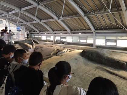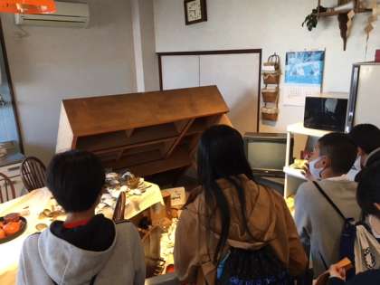 館内見学でも、地震による断層のずれやメモリアルハウスの室内の様子を目の当たりにして、当時の地震の強さを感じていました。メモを書いている姿もあり、多くの学びがあったようです。