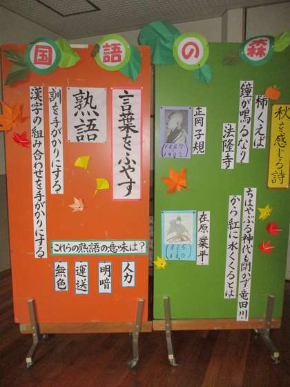 学校の掲示板が季節を感じるものになりました。芸術の秋ですね。