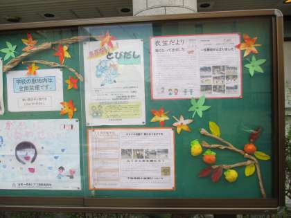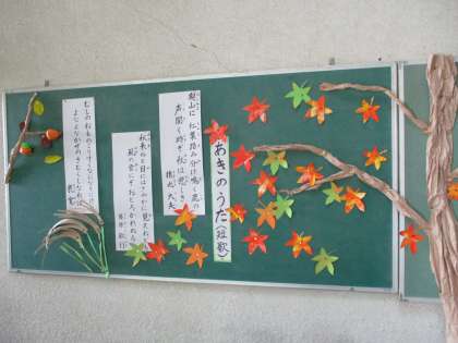 モミジやカキなど秋を感じる掲示になっていますので,ぜひじっくりと見てほしいと思います。