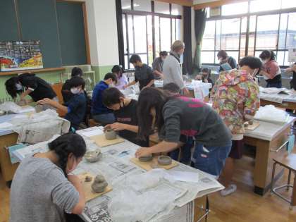 出来上がったものは,これから学校にある窯で焼き,釉薬で色づけをしていきます。