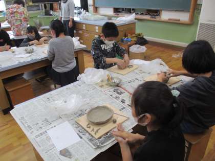 今日は,地域の方を講師としてお招きし,6年生が卒業制作として陶芸を教えていただきました。
