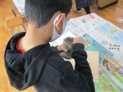 粘土をこねて,お皿やカップなど思い思いに形をつくっていましたが,なかなか思うようにはうまくできず,隙間ができたり,歪んでしまったりと試行錯誤しながらつくっていました。