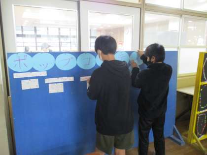 図書委員会では,先月の読書週間で募集したポップの中から,すてきな作品を選んで掲示しました。