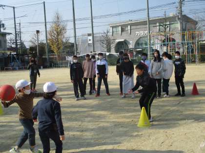 6年生のコートは,2年生の半分以下なので逃げるスペースがほとんどなく,2年生でも6年生をうまく当てていました。