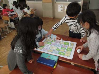 めあてを考えた後には,みんなですごろく大会をしました。「宇宙すごろく」や「お買い物すごろく」など,色々な種類のすごろくがあり,友達と一緒にお正月ならではの楽しい時間を過ごしました。