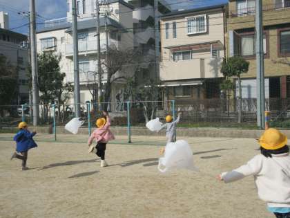 生活科のふゆとともだちで作ったたこや風車などを使って,運動場でかぜと遊びました。今日は風が少なめでしたが,カラフルな風車を上手に回す子,風の向きを考えてたこをあげる子など,一人ひとりが考えて遊んでいる様子でした。お家にもって帰ったので,また補強して遊んでみてもいいですね。