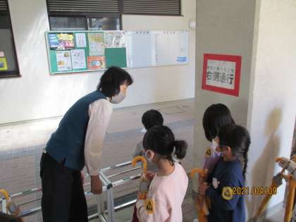 今日は朝から教室に入り,ランドセルの片づけ方や傘の置場所,トイレの仕方など,学校生活に必要なことをたくさん教えてもらいました。