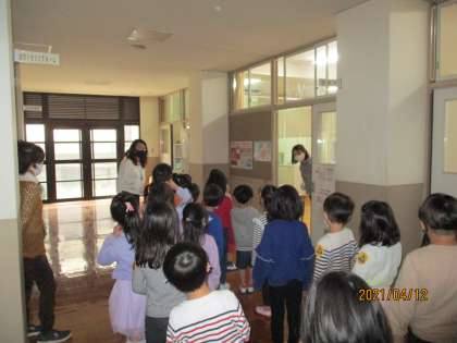 今日は学校探検をしました。どこに,どんな部屋があるのか,担任の先生に教えてもらいながら学校の中を歩きました。