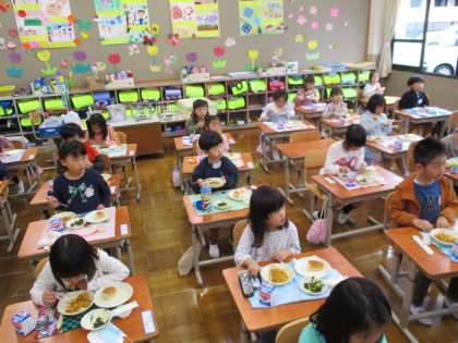 1年生 給食おいしいな!