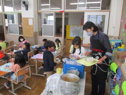 みんな「おいしい,おいしい」と言って,中にはおかわりする子もいて,ほとんどの子が残さずに食べられました。