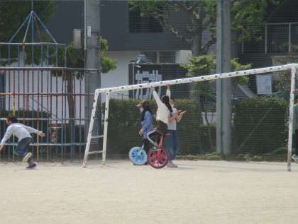 また昨年度末にPTA賛助会様より一輪車を6台寄贈していただきました。新しい一輪車を見つけて,さっそく乗っていました。