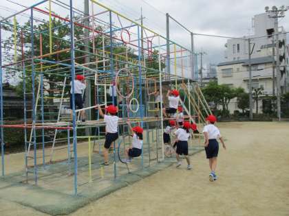 子どもたちは朝から楽しみにしていたようで,小学校の大きな運動場,遊具を使って存分に体を動かし,楽しむことができました。