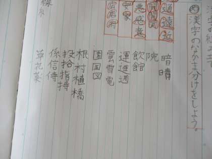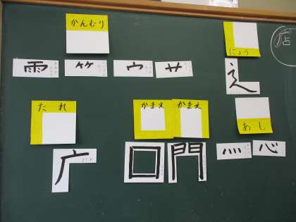 国語科では,漢字の組み立てについて学習しました。今までは「へん」と「つくり」に注目していましたが,それ以外にも注目して学習を進めました。習った漢字を仲間分けすると,たくさんの種類に分けることができました。「草かんむり」や「しんにょう」など,どうしてその部分を使うのかについても学習を進め,漢字の意味についても深めることができました。