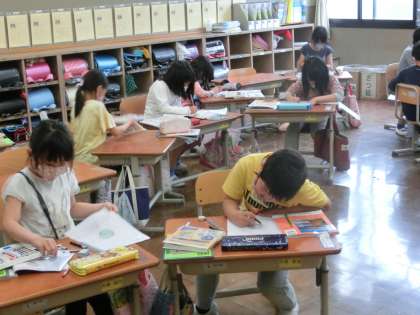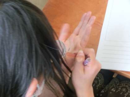 虫めがねの使い方を学習した後,観察したことをカードに記録していきました。