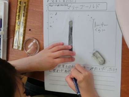 肉眼では気づかなかったことも虫めがねを見ると,新たな発見があったようです。
