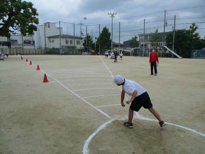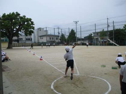 今日は,2年生から6年生までの児童が新体力テストのソフトボール投げに挑戦しました。