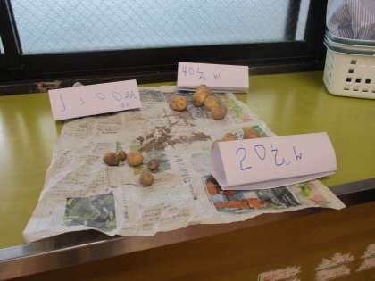 よろしく大会,先生と仲良くなろう会も終わり,通常通りの学習に戻ったわかばですが,新たな学習として畑で収穫したジャガイモでお店屋さんを開こうという計画が始まりました。ジャガイモを大きさごとに値段分けしたり,看板を作ったりとそれぞれの役割で取り組み始めています。今後が楽しみです。