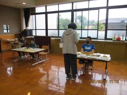 収穫したジャガイモを使ってじゃがいもやさんを開きました。看板を作り、じゃがいもの値段をきました。低学年は、じゃがいもを包んだり袋に入れました。高学年は買ってもらった金額を計算したり,おつりも考えて出したりしました。たくさんのお客さんに来ていただき,みんなたのしかったと話していました。次は花屋さんを計画しています。