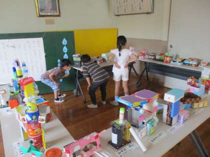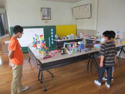 お昼休みの時間に1年生の教室前を通ると,1年生が図画工作科の時間につくった作品が廊下に展示してありました。すると,前を通る上級生たちが「みんなうまいなぁ。」「これほんとに〇〇に見えるわ。」と言いながら通り過ぎていました。中には一人一人の作品をじっくりと鑑賞している子たちもいて,1年生も嬉しそうでした。