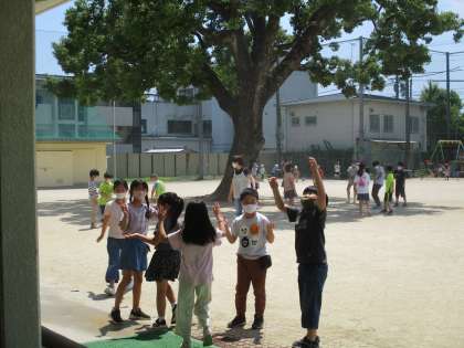 今週は真夏を思わせるよいお天気で,気温もぐんぐん上がっています。学校だよりにも載せていますが,今週からお昼休み以降の運動場での遊び方について制限をつくりました。鬼ごっこやリレーなど,走る運動は行わないように子どもたちに伝えています。