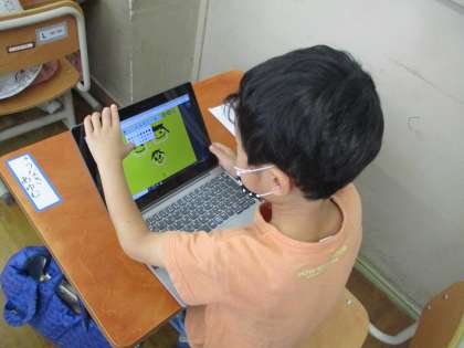 2回目のパソコンの学習をしました。2回目ということでスムースにログインすることができました。「ロイロノート」というアプリを使ってお絵かきを楽しみました。