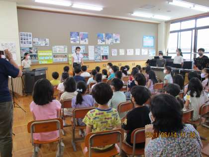 今日は6年生の合奏を聞かせてもらいました。いろいろな音を聞いた後、いよいよ合奏のはじまりです。シンバル、大太鼓、木琴などの音色にうっとりの1年生でした。「いろいろな音が聞けてうれしかった。」「シンバルの音がすごかった」の感想が聞かれました。