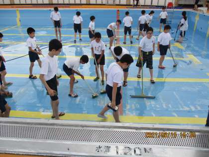 来週からの水泳学習に向けて、6年生がプール掃除をしました。プールの中,階段・更衣室などわかれて、一生懸命にしてくれました。2年分の掃除だったので、大変でした。でも、掃除が終わった後の6年生は、とても、すがすがしい顔をしていました。ご苦労様でした。6年生は、再来週からの水泳学習を楽しみましょう。