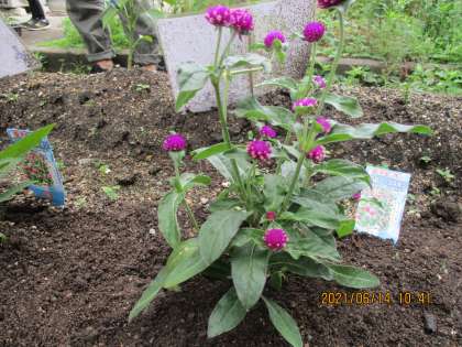 お花屋さんをするためにいろいろな花を育てています。2種類の新しい花が仲間入りしました。千日紅とパニックタワーです。ペットボトル花瓶の準備も進めています。各学級に配れる日を楽しみに世話をしていきます。