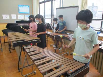前回は6年1組の合奏を,今日は6年2組の合奏を聞かせてもらいました。今日はそれぞれの楽器を演奏するお兄さんやお姉さんから鑑賞のポイントを教えてもらってから聞きました。今回も6年生の素晴らしい演奏にうっとりの一年生でした。