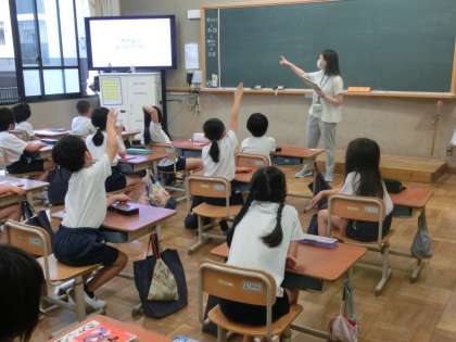 身体計測の前に,養護教諭の先生に熱中症について教えていただきました。