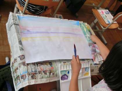 次回からは,背景を塗った画用紙に絵を描いていきます。