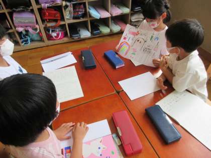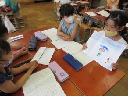 国語科の学習であったらいいなと思うものを絵に表し,紹介する学習をしました。質問のしかたや感想の伝え方の学習をした後,発表会も行いました。質問されることで,より自分の考えを深められた子たちも多くいました。そらとぶ自転車や,ハートのお家,なんでもできるえんぴつなど,子どもたちの発想はユニークでおもしろいです!!