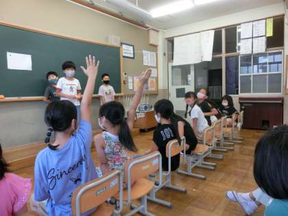クイズの出題内容や効果音を工夫したり,これまでに学習したことを生かして演奏したりと,趣向を凝らした出し物に,学級みんなで盛り上がりました。