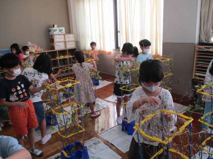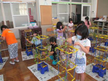 長い間育ててきたあさがおのつるを使ってリースを作りました。まず,あさがおのつるを植木鉢からはずします。ぐるぐるに絡まっているつるをはずすのに四苦八苦していましたが,少しずつコツをつかみ一生懸命取り組んでいました。次に,はずしたつるを輪にしていきます。立派に育ったつるを輪にするのも大変でしたが,出来上がったリースを見てみんな大満足。12月に飾りつけをする予定です。