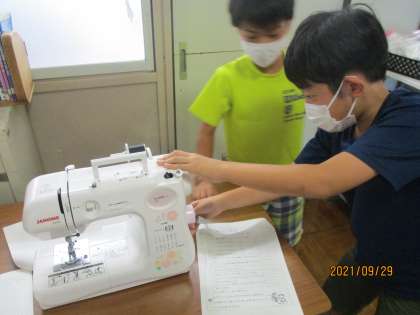 今回の学習では,準備と片付けの方法を学びました。次は,空縫いに挑戦します。安全にも気を付けながら,正しい使い方を身に着けられるようにしていきたいと思います。めざせミシンマスター!
