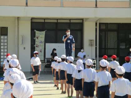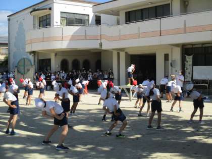 準備体操では「ラジオ体操第一」をみんなでやりました。一つ一つの動きを大きくすることを意識してがんばっていました。