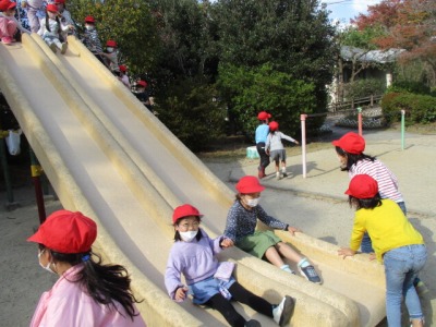 遊具や広場でたっぷり遊んだ後は,みんなで記念撮影をとりました。「楽しかった。」「また,行きたい。」ととても充実感のある様子でした。朝早くから,お弁当等,ご用意してくださり,ありがとうございました。