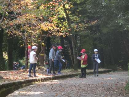 書かれているお題をクリアするために,木の名前や渡り鳥の名前を調べたり,どんぐりを拾ったり,ハートの形の葉を探したりするなど,秋の自然に親しむことができました。