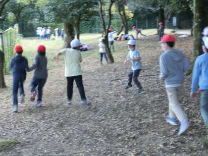 「だるまさんがころんだ」を楽しむ子,大なわを楽しむ子,フリスビーを楽しむ子,どんぐりや色のきれいな葉を探して楽しむ子など,それぞれのやりたいことをして過ごしました。