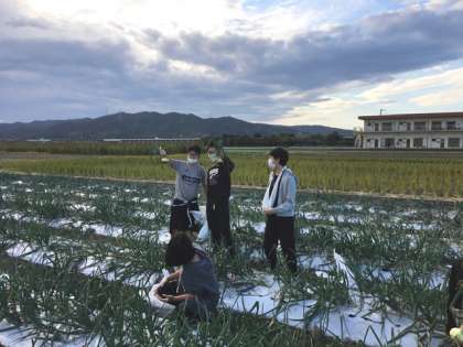 濱田ファームに着きました。最初に、玉ねぎなどの南淡路の農業についてのお話を聞かせていただきました。